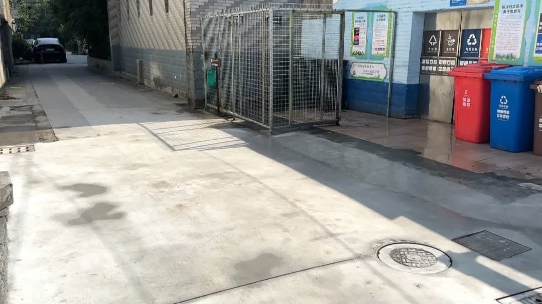 朱泾镇南圩居委会工作人员徐文辉说:“垃圾房靠近大门口,经常有垃圾车经过 ,由于垃圾车车身比较庞大,造成了道路破损。每天早上垃圾车清扫好以后,还需要用水把残留垃圾冲走,就会造成地面积水,给居民出行带来不便。所以通过这次改造,地面变得平整了,让大家出行更方便。”