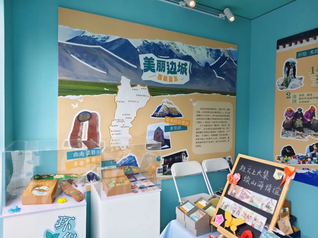 除了设置农副产品展销区外,现场还展出了由上海市、普陀区两级援藏资金支持、亚东援藏小组辅导的庞达文创合作社打造的“雪域亚东”非遗文化馆,展馆内容丰富,羊绒刺绣传递西藏元素,石绘木绘彰显环保。馆内人头攒动、市民驻足欣赏边境红色文创,现场互动气氛良好,积极参与青稞护手霜与高海拔植物科学普及课程,争相盖特色文创印章。通过文创产品展销为戍边农牧民增收,传播和倡导了兴边富民的援藏理念。