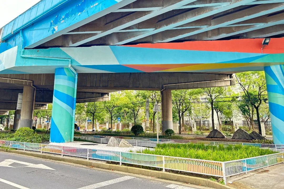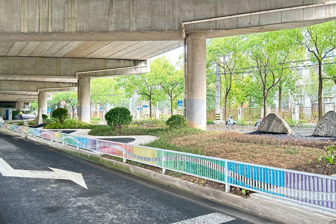 场中路桥下(凉城路东侧)的绿化空间,也在这次改造中焕发新生。通过耐阴植物和置石的巧妙搭配,营造出别具一格的枯山水景观。