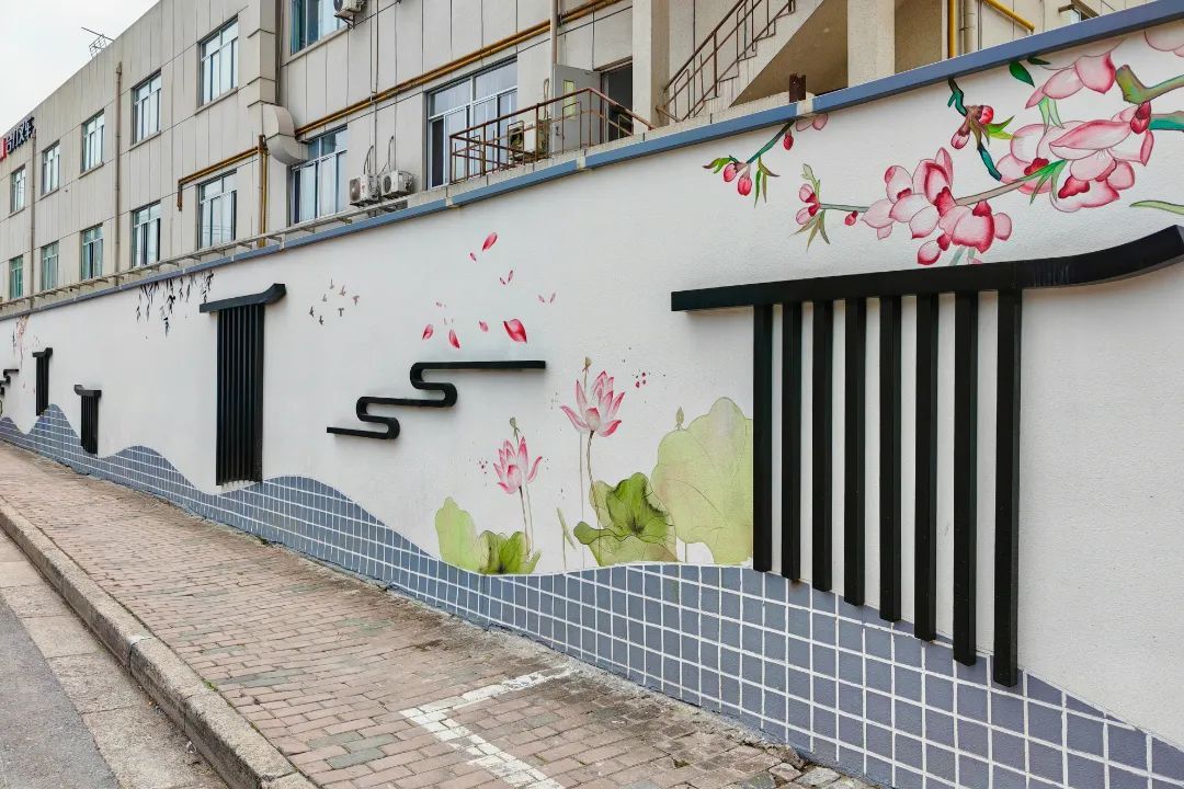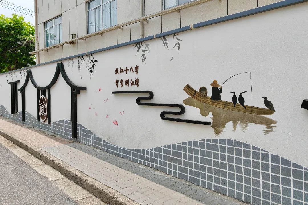 部分路段的围墙也进行了刷新美化,展示了江湾古镇特有的历史文化韵味。