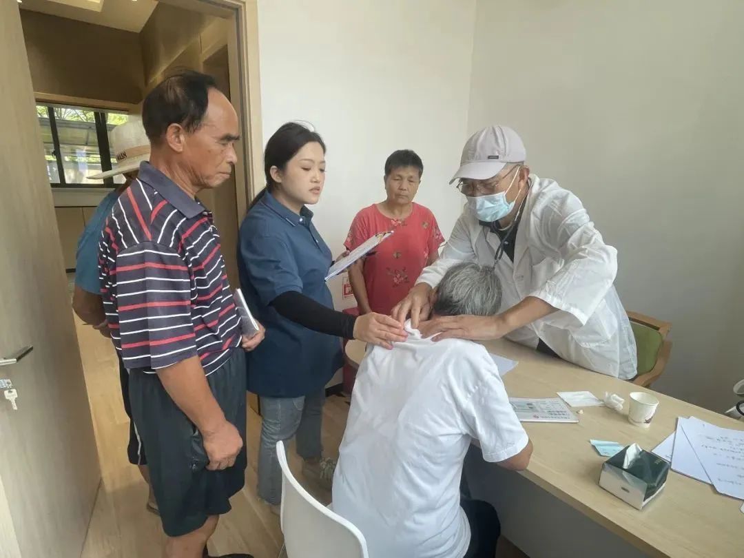 在港西镇综合为老服务中心,资深医疗专家为村里老人开展健康咨询。