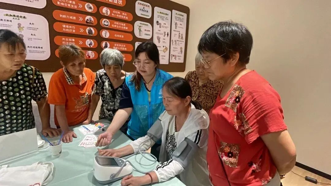 此外,港西镇也与杨浦区退役军人事务局“军休杏林”医疗志愿服务队建立常态化合作,服务农村老人,提升老人健康意识及身心健康水平。志愿服务队的资深医生每月定期到港西镇综合为老服务中心和港西镇各村居为老人和村民开展健康咨询服务。这种常态化医护咨询和非药物干预活动,持续为包括认知障碍风险老人及其家属在内的农村地区居民提供高质量专业医疗服务,深受村民欢迎。