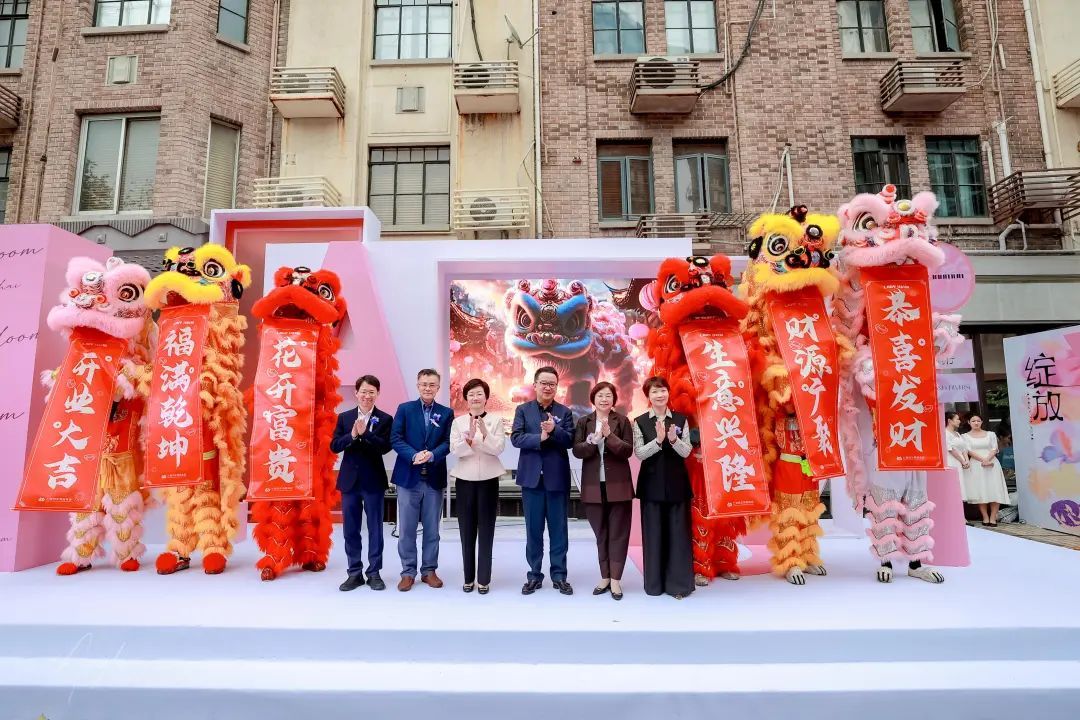 在热闹的舞狮表演中,上海市妇女联合会党组书记、主席张华,百联集团党委书记、董事长叶永明,百联集团党委副书记、总裁濮韶华,黄浦区副区长袁园,百联集团副总裁史小龙,百联股份党委书记、董事长张申羽等领导共同上台,为上海妇女用品商店焕新开业仪式揭幕,也为象征着此次焕新祝福与美好愿景的狮子们“点睛”开光,一起见证璀璨新章的开启。