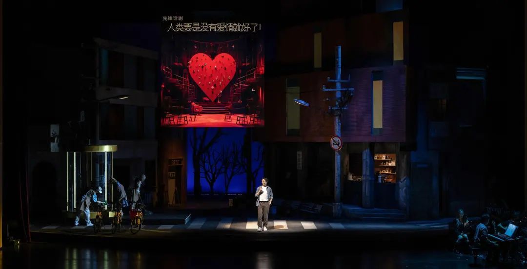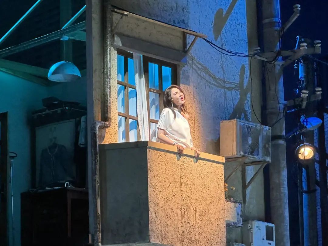 安福路西口的咖啡店、话剧艺术中心的旋转门、修鞋匠的小铺子、华山路的指示牌……当灯光照亮上海建筑外墙独有的潮湿印记和斑驳肌理,一瞬间分不清是在真实的街头,还是上海文化广场的舞台。《下坡路》《自画像》等歌曲音乐依次响起,观众马上被拉回电影中的故事情节。著名作曲家、流行音乐编曲家、音乐制作人彭飞回归音乐剧舞台,为作品创作了20首歌曲。