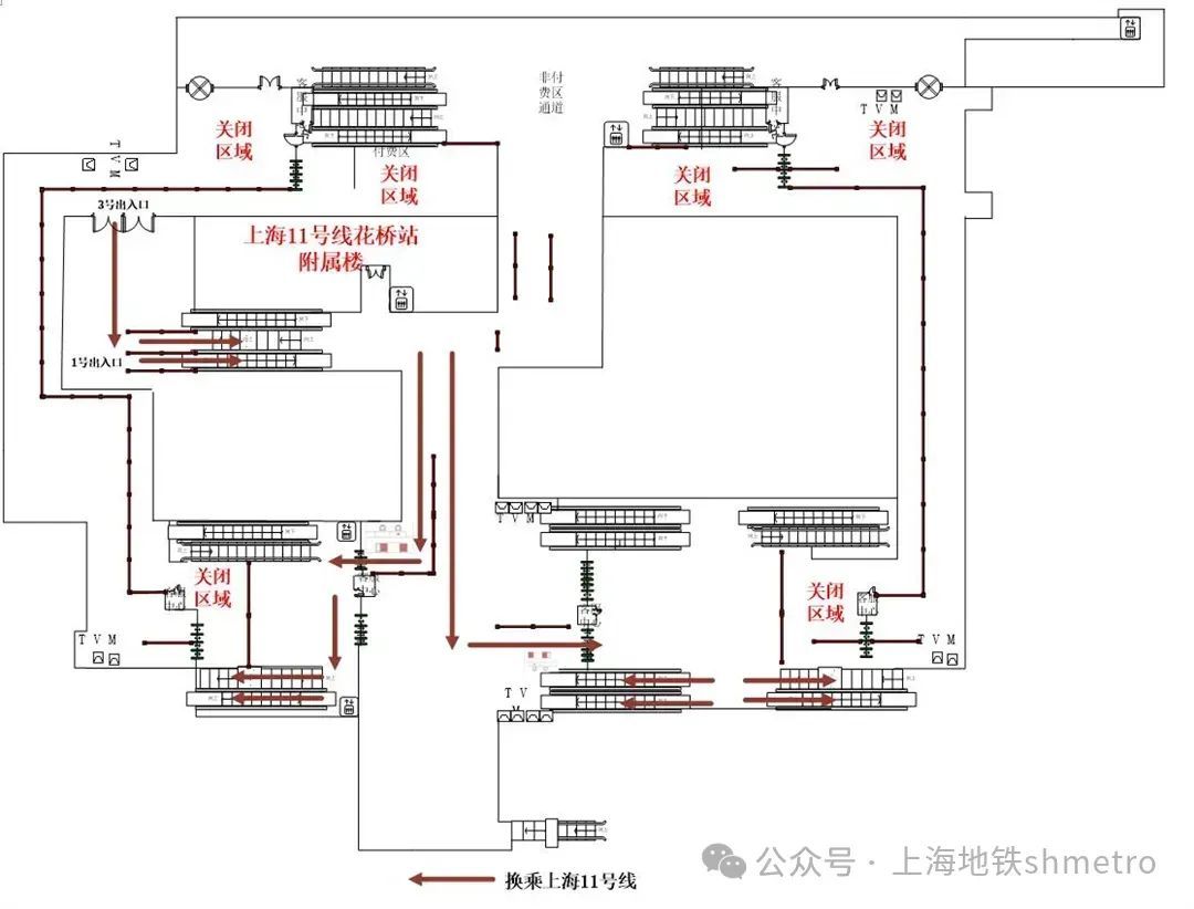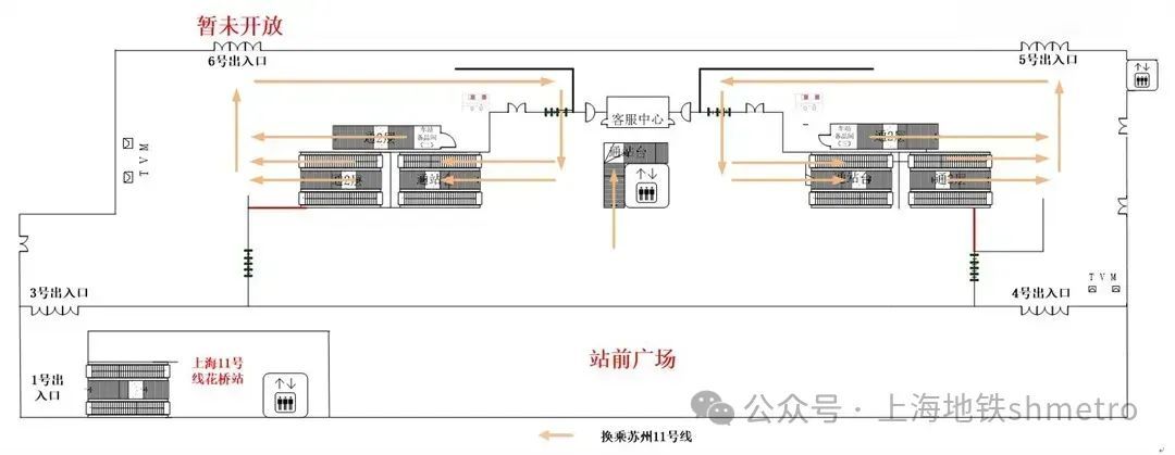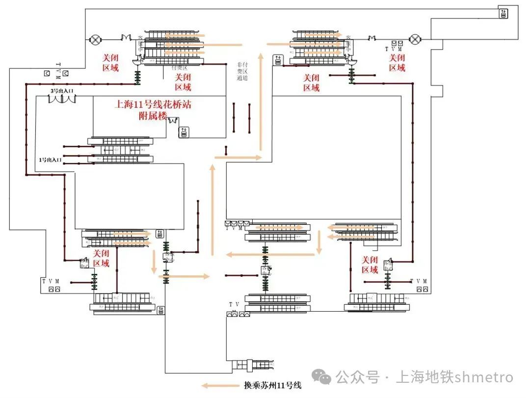 申通地铁集团介绍,为配合2024年第七届中国国际进口博览会安全、顺利进行,根据公安部门有关规定,苏州轨道交通决定于10月25日至11月12日关闭11号线花桥站东西两端换乘连廊(含“Metro大都会、苏e行专用通道”)。现场将按照公安部门要求及客流情况,采取限流、分流措施,乘客可根据指引有序从中部换乘连廊、站外广场进行换乘,关于博览会期间乘客换乘通行变更具体调整如下↓