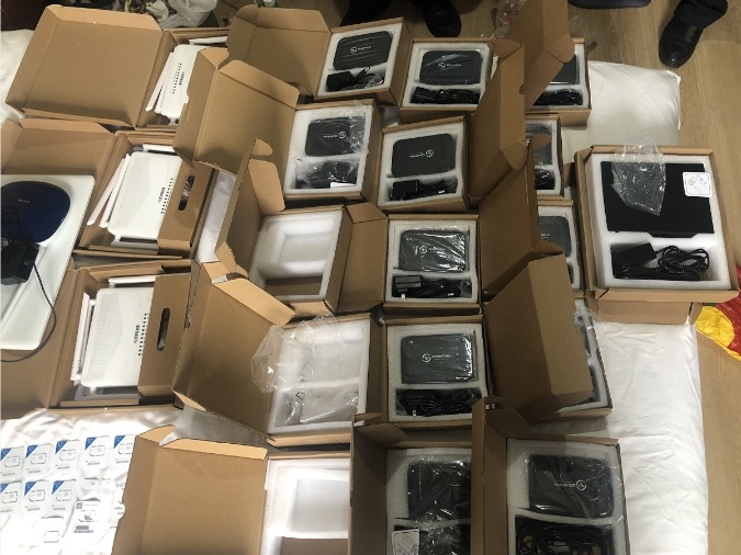 通过调阅陈大爷家周边监控,民警迅速锁定了犯罪嫌疑人,并在一家宾馆内成功抓获嫌疑人方某及其同伙,现场缴获若干台非法设备。