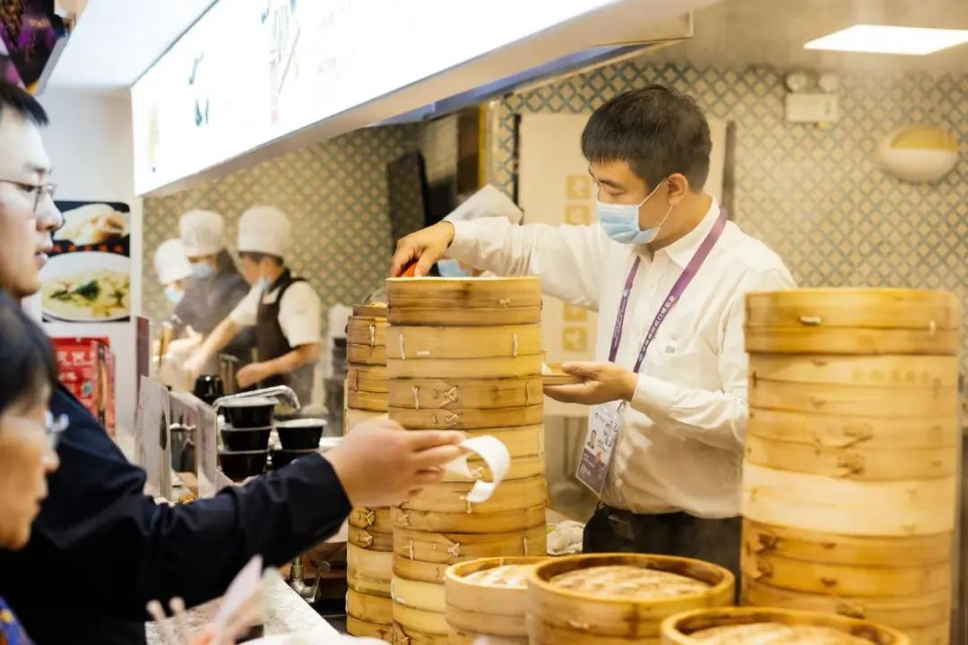 已是连续第七个年头入驻“上海特色小吃馆”的豫园文化饮食集团,其旗下的南翔馒头店、宁波汤团店、春风松月楼等传统手工制作的南翔小笼馒头、宁波汤团、素菜包等招牌产品,始终占据着上海特色小吃馆的“C位”,一到饭点,现场排起的队伍就成了馆内一道独特的风景线。这些上海知名小吃不仅吸引了国内食客,就连不少外国展团代表也闻香而至,纷纷前来体验。