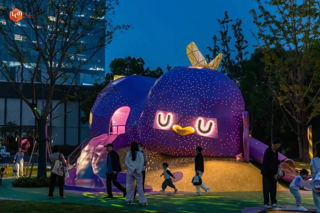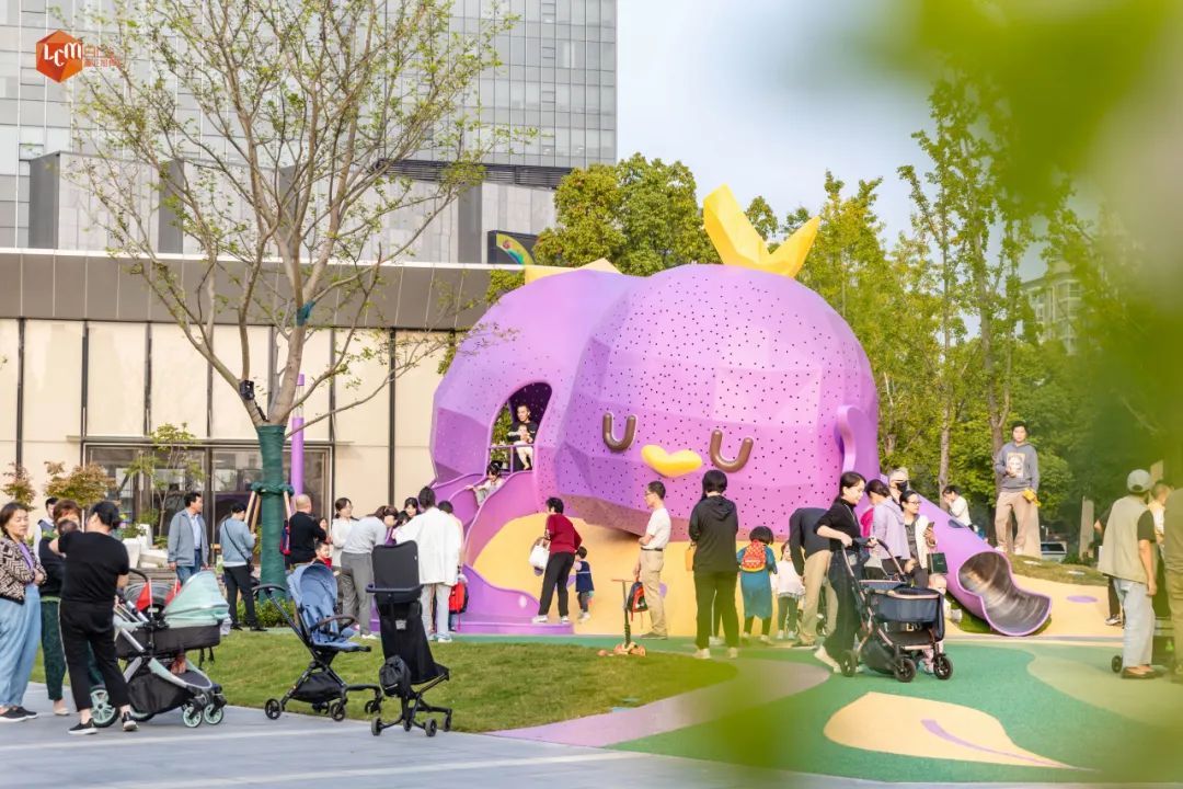 公园中心的巨型紫色睡梦鸟型装置“DODO”是公园IP形象,不仅造型颜色有趣亮眼,装置内部空间“暗藏玄机”,可供孩子们尽情探险玩耍。
