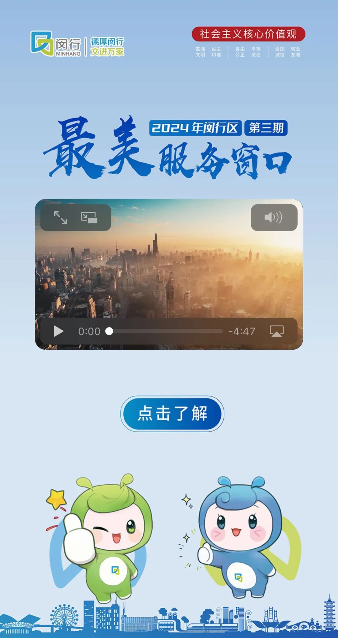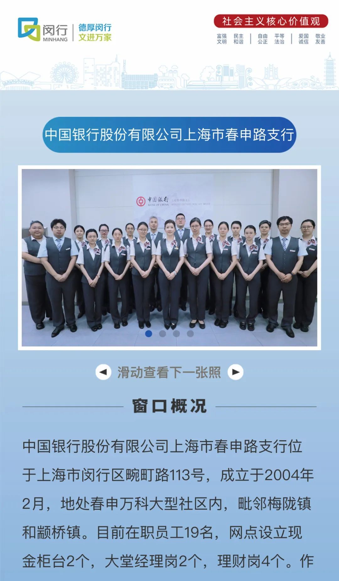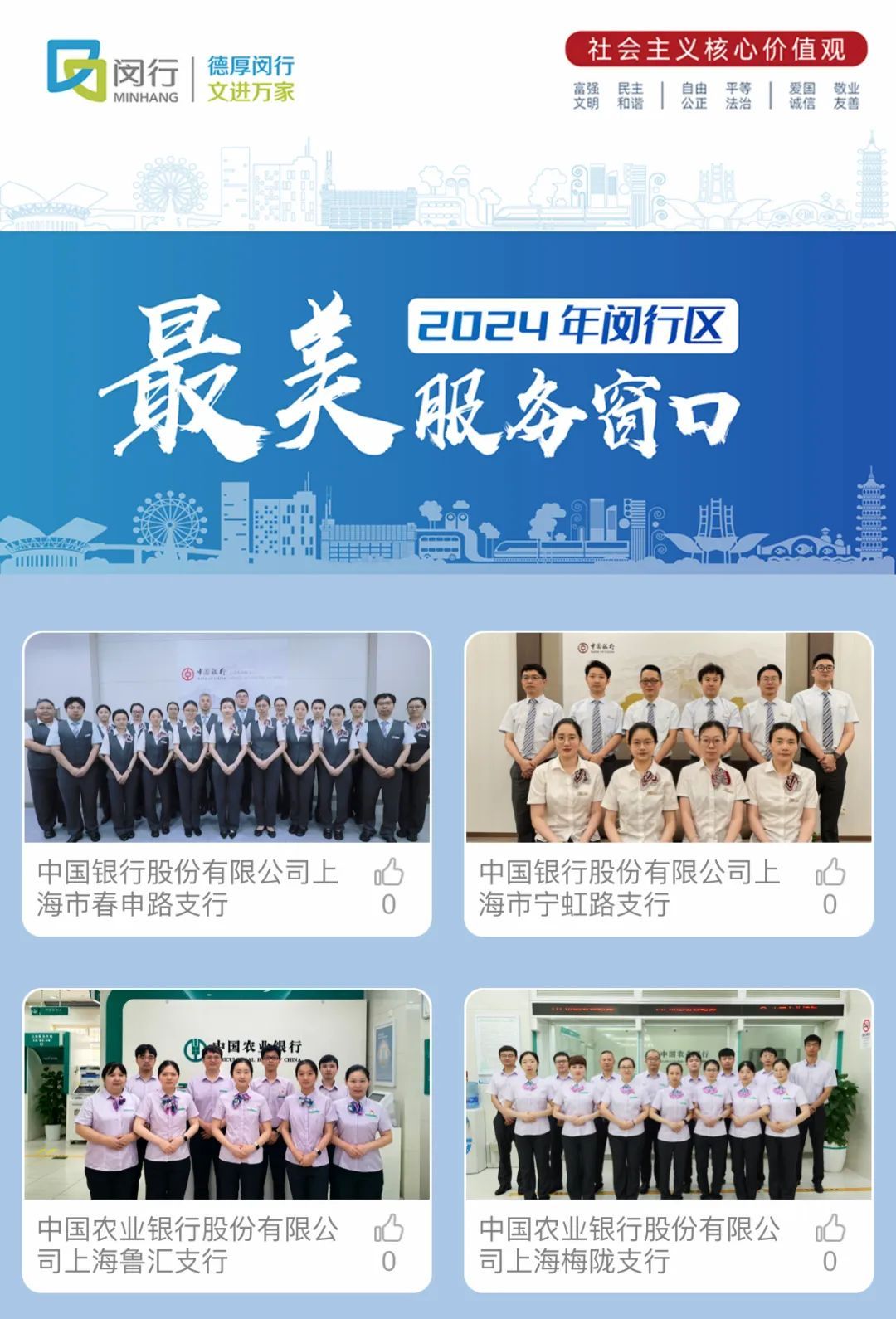 为持续打造文明窗口服务品牌,不断提升窗口服务保障能级,巩固深化全国文明城区建设,近期,闵行区开展了新一轮寻找“最美服务窗口”活动,共有48个优秀窗口脱颖而出。在第七届进博会即将开幕之际,我们将通过四期H5专题,带领大家一同领略新一届闵行区“最美服务窗口”的风采。