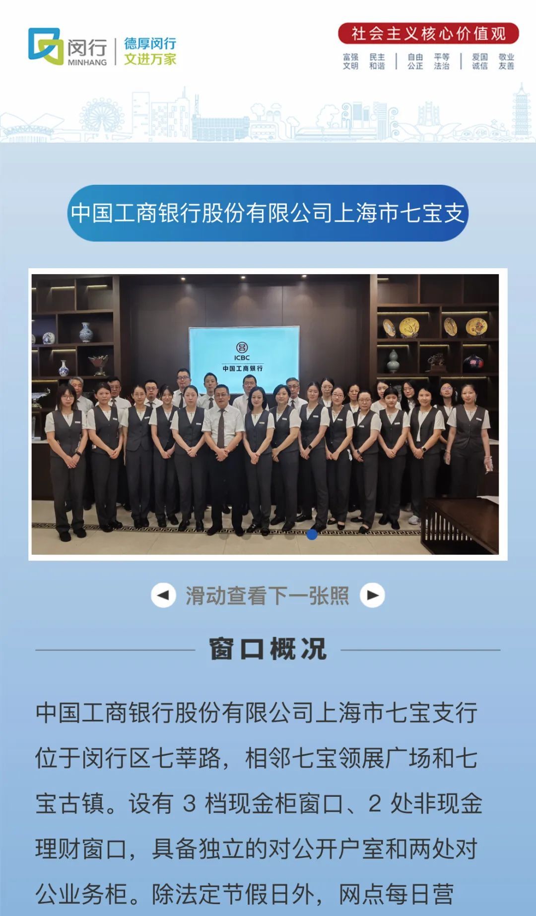 在即将到来的第七届进博会期间,闵行区银行业将以更加开放奉献的姿态,迎接来自世界各地的宾朋。通过提供专业的金融咨询、便捷的支付结算、安全的资金管理等全方位服务,银行业将助力进博会的顺利进行,展现闵行金融业的强大实力和优质服务。本期让我们一同领略闵行区银行业“最美服务窗口”的风采,感受他们用心服务、用情沟通的专业精神,共同见证闵行区银行业在服务保障进博会中的积极作用。