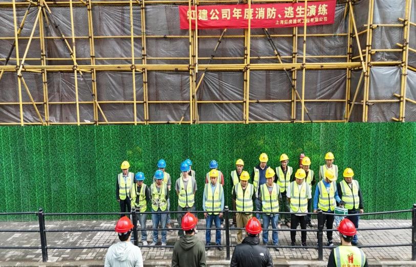 为增强施工人员的消防安全意识,提高应对突发火灾事故的快速反应和自救互救能力,确保在紧急情况下能够迅速、有序、安全地疏散,最大限度地减少人员伤亡和财产损失,日前,虹建公司在113街坊施工场地组织进行了“年度消防逃生应急演练”。