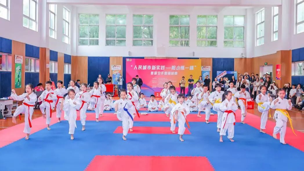 今年以来,杨浦区通过深化体教融合,大力推进学校体育改革。上海市民办阳浦小学开设空手道课程,走出一条以特色体育资源带动体教融合的创新之路。 10月27日,在上海市民办阳浦小学举办了“人民城市新实践——阳小怀一杯首届空手道锦标赛”。本次比赛共有73名学生报名参赛,分别来自民办阳浦小学和怀德路第一小学。 开赛仪式上,身穿空手道服装的小学生们展示了自己的空手道学习成果,出拳、横踢、劈腿,一招一式之间流露出饱满自信的精神气,以及超越年龄的定力和沉稳。