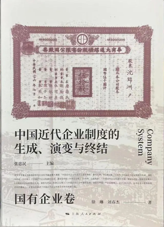 《中国近代企业制度的生成、演变与终结·国有企业卷》,徐琳、刘春杰著,上海人民出版社,2024