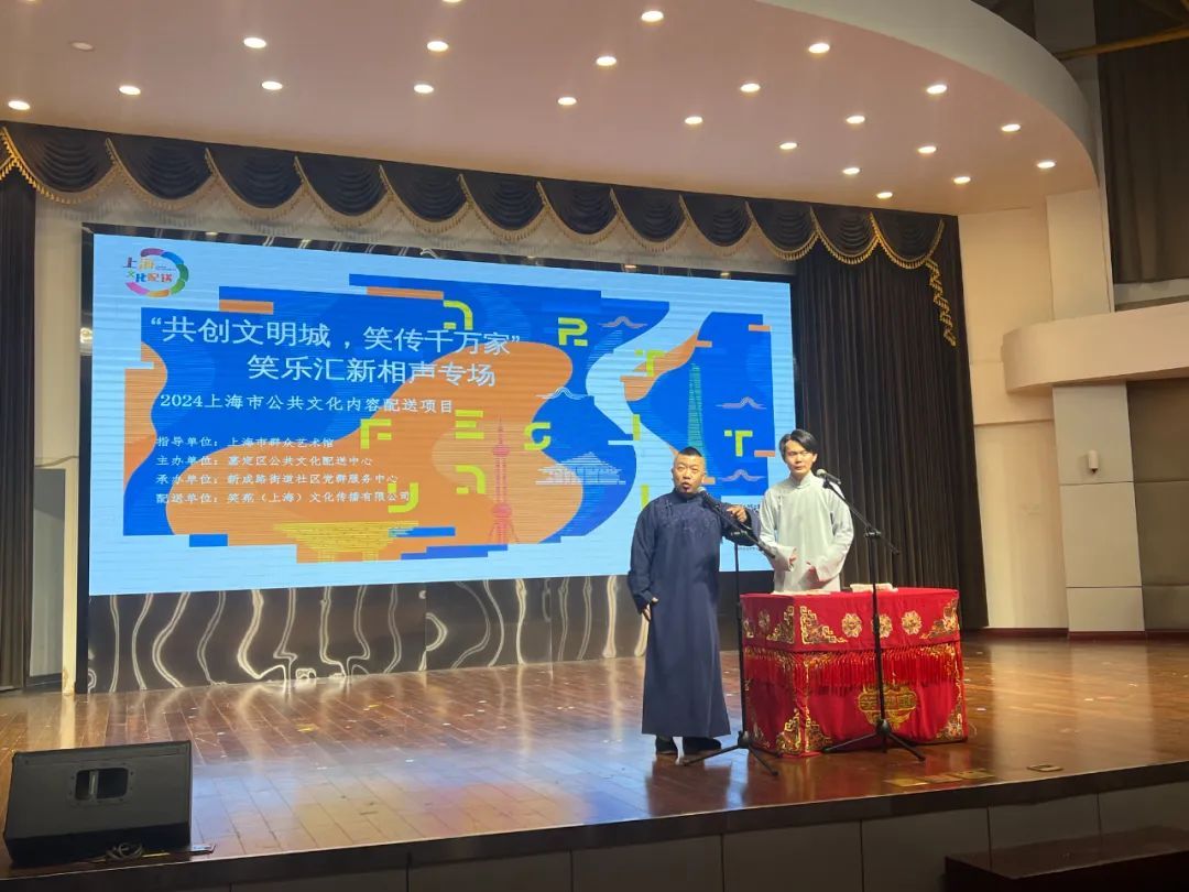 建好设施,还要做优服务。作为2024年嘉定区公共文化内容配送项目之一,今年3月,笑乐汇新相声专场在新成路街道文化体育服务中心热闹开演。郭德纲鹤字科弟子、笑乐汇相声会馆班主高鹤彩携会馆一众青年演员,为百余名社区居民献上了一台妙趣横生的“相声大餐”。居民王女士回味无穷:“现场相声互动性更强,全家都听得很开心,笑声不断。”