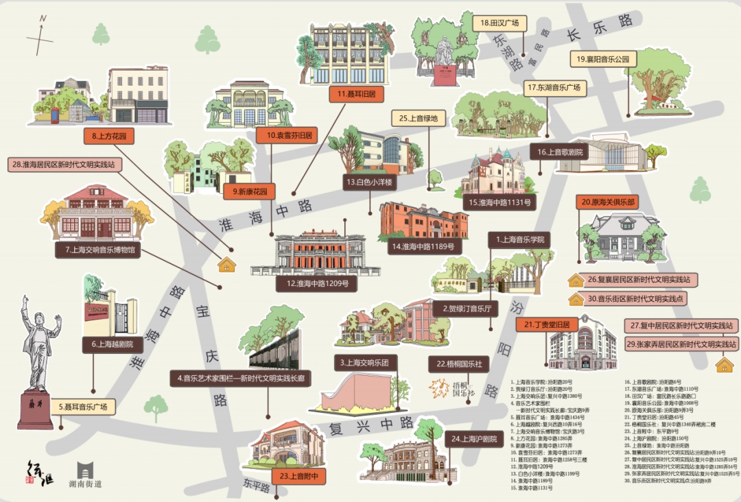 在湖南街道上海音乐学院周边,徐汇区通过绿地开放共享、景观道路建设,着力打造“精致优雅的风貌街区、活力律动的音乐街区、公共开放的市民街区”,进一步保护城市历史风貌,深挖城市文化内涵。