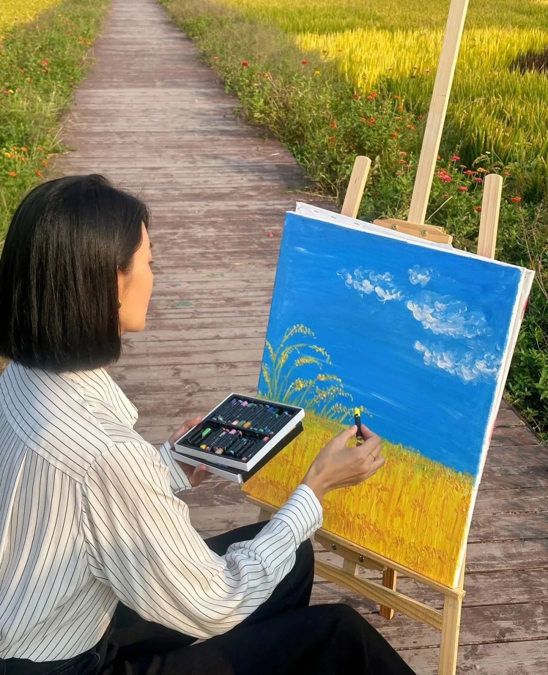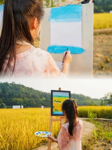 除此之外,你还可以漫步在田间,欣赏以稻草为材质创作的艺术装置,感受独特的乡村风情;也可以把眼前的稻田风光绘成一幅画。