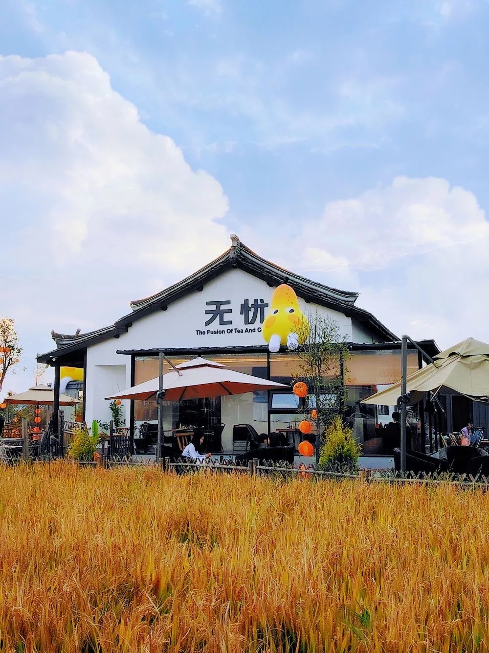 从南入口走进李窑村,首先映入眼帘的就是一片片金黄的稻田,以及被稻田环绕的无忧闲院,在这里,你不仅可以喝咖啡,还可以品茶,感受地道的烟火气。