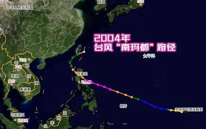1949年以来仅有2个台风在12月登陆我国,全年中最晚的是2004年28号台风“南玛都”,它于2004年12月4日登陆我国台湾省屏东。