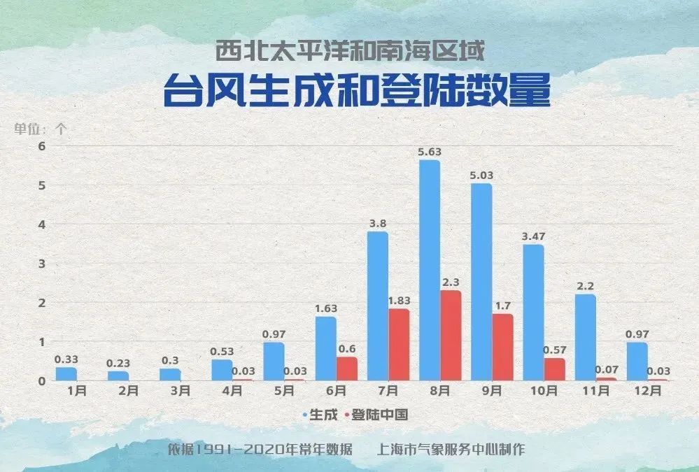 一年中各个月份都有台风生成