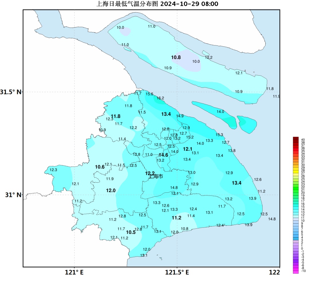 上海今天受地面高气压控制,天气晴好。早间气温略低,全市大部最低气温在10~13℃之间,中心城区徐家汇站为14.6℃。白天凉爽舒适,预计最高气温21℃。下午起风力略有增大,北到西北风4-5级,沿江沿海地区阵风有6级。