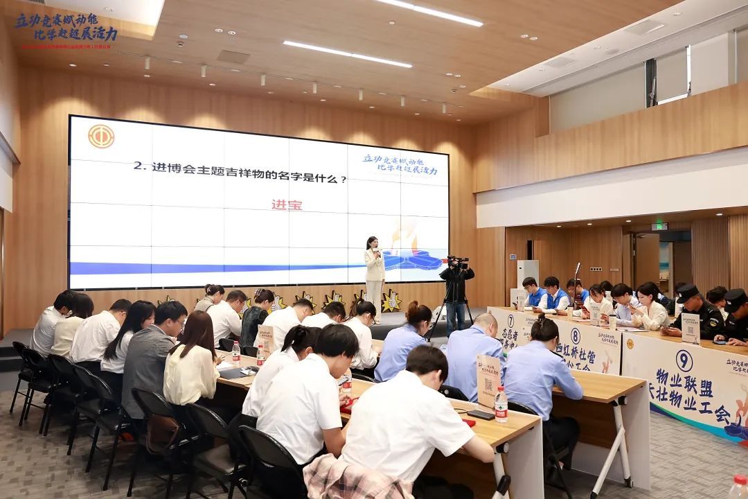 本次大赛由徐泾欣悦保洁、城运中心、志愿者服务中心、人口办 、西虹桥社管中心、东南西北“泾彩”党建联盟、医疗行业联盟、物业联盟工会等12支职工队伍,分别围绕进博综合知识竞赛、护航进博技能大比拼和随机应“辩”等环节进行激烈比拼,全面展示徐泾职工服务保障进博的专业技能和风采。