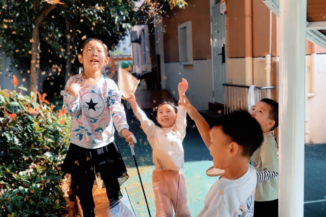 幼儿园里的桂花散落一地