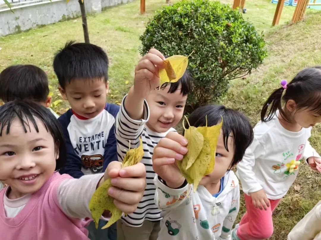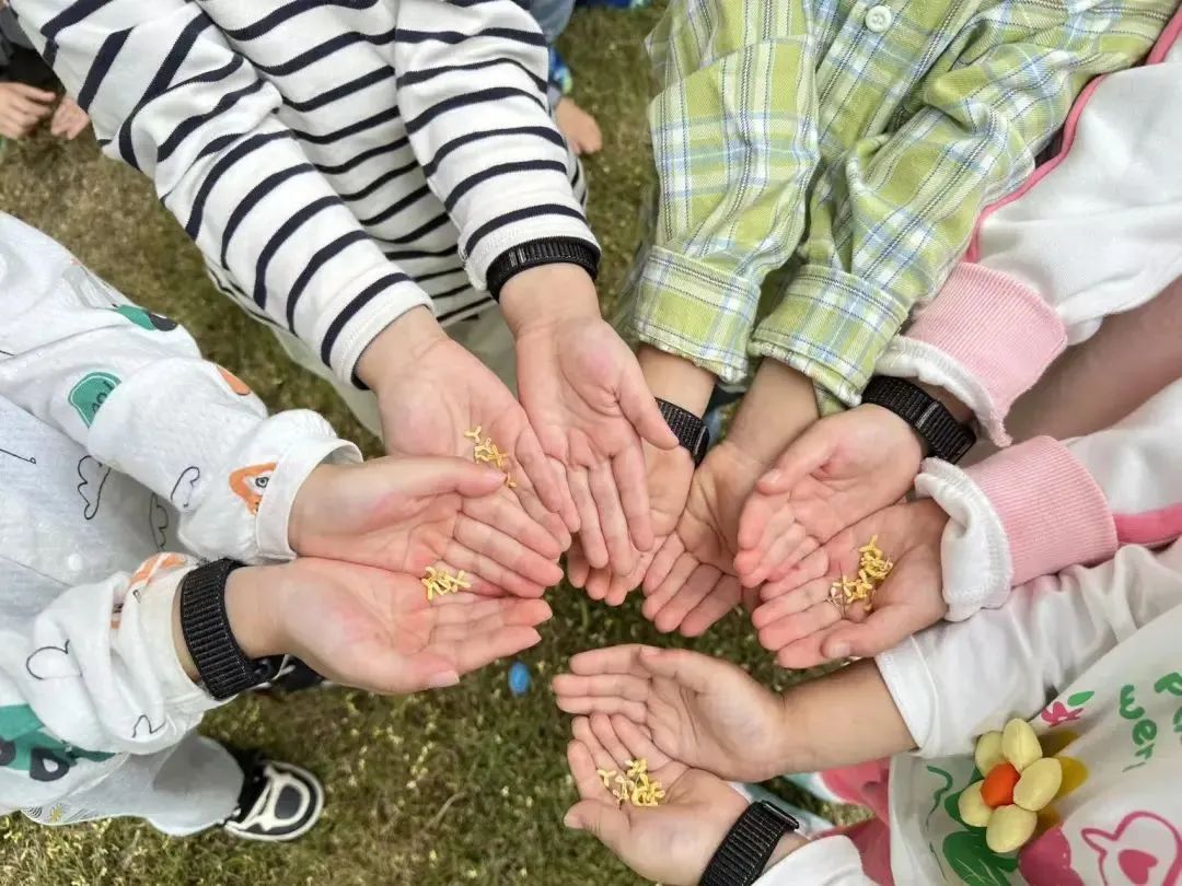 老师和孩子们一起收集桂花