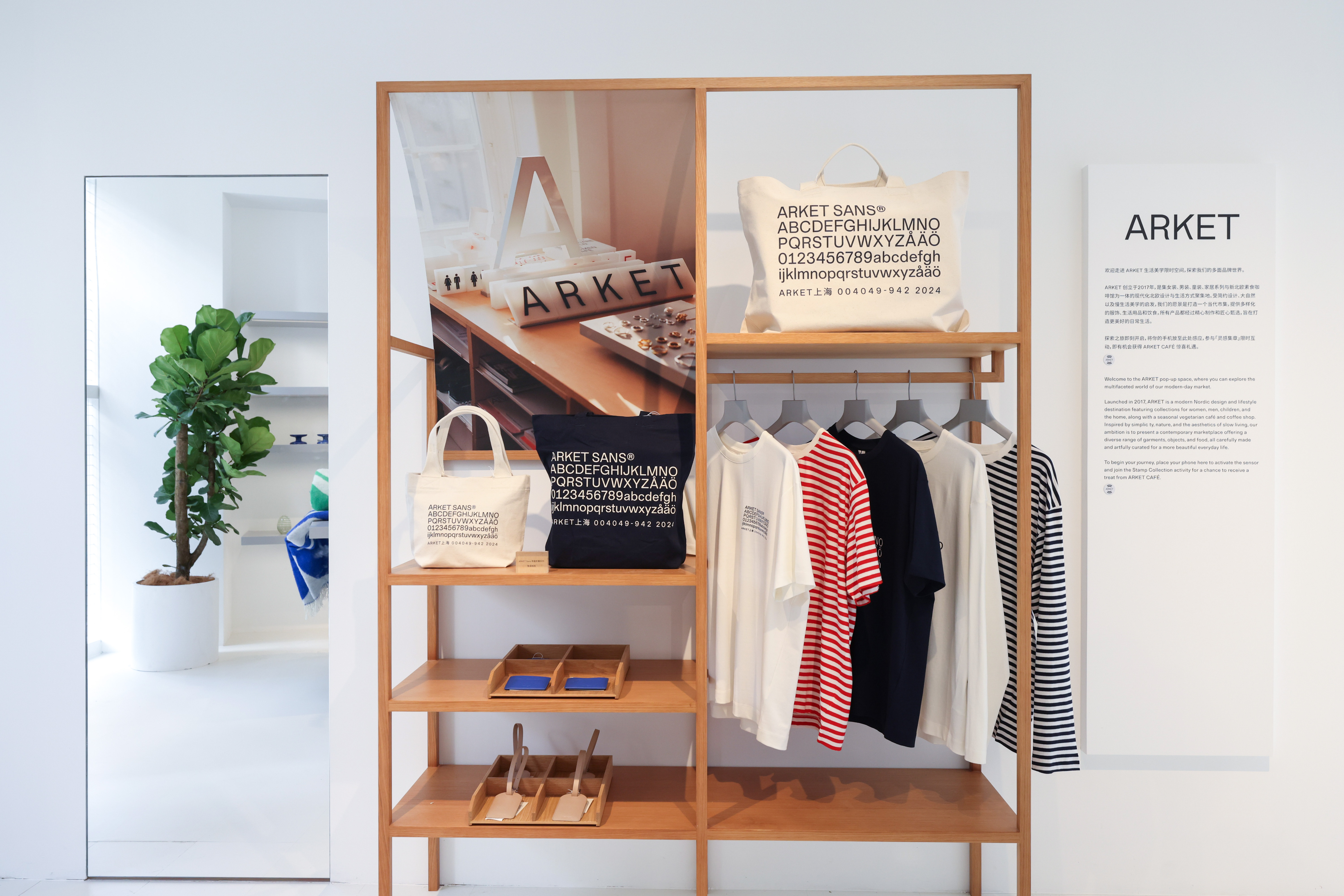 为庆祝品牌首个限时空间的开设,ARKET特别推出ARKET Sans限量胶囊系列,该系列中的印花设计源自品牌专属字体 ARKET Sans,该字体同样运用于品牌标志。
