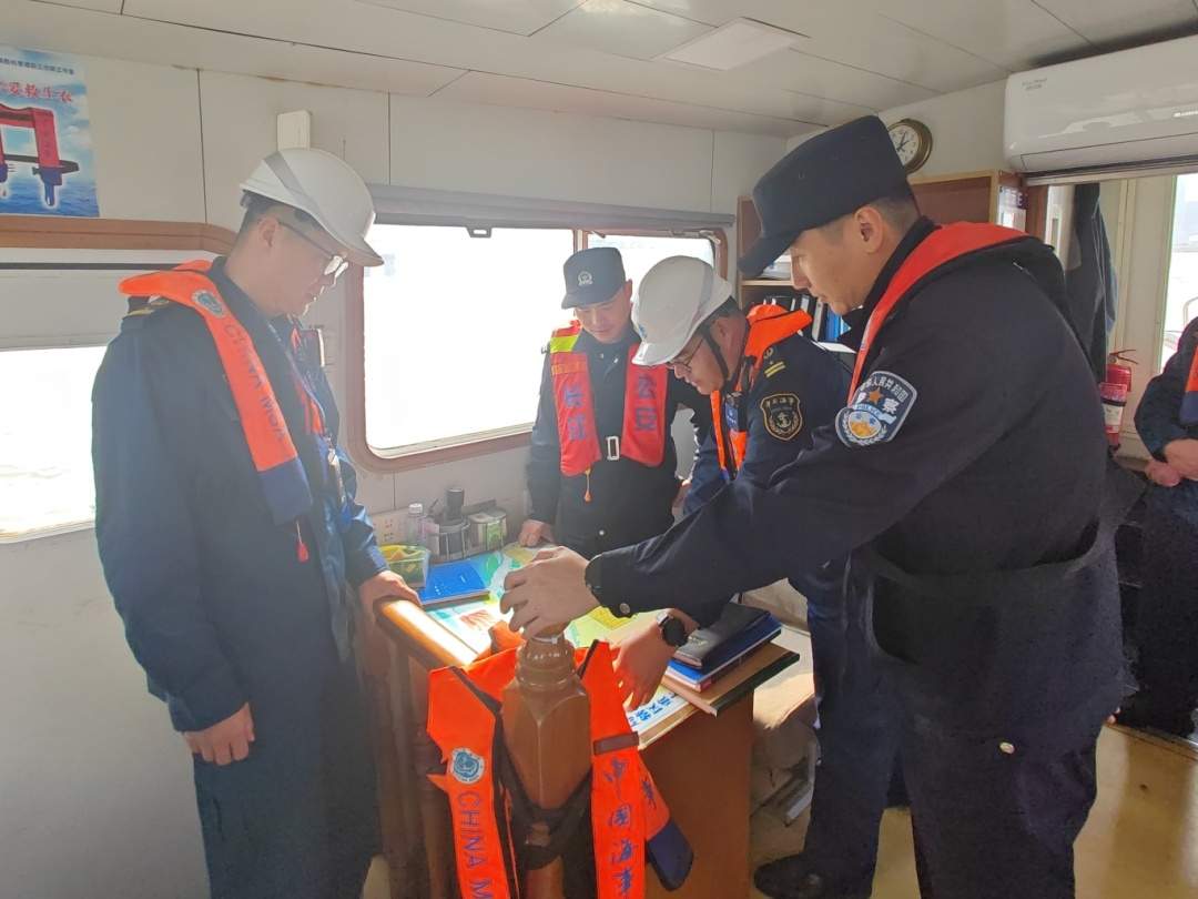 10月28日下午,双方党员青年联合成立“护航进博水上安保青年突击队”,开展首次青年突击队联合执法活动,重点对吴淞口国际邮轮港前沿水域进行巡视巡查,开展进博会水上管控宣贯,对邮轮接收污染物作业船舶开展联合登轮检查,督促船方切实落实船舶防污染主体责任,同时向船方宣贯进博会期间入沪信息专项申报、开展安全自查的相关要求,确保船舶安全营运。
