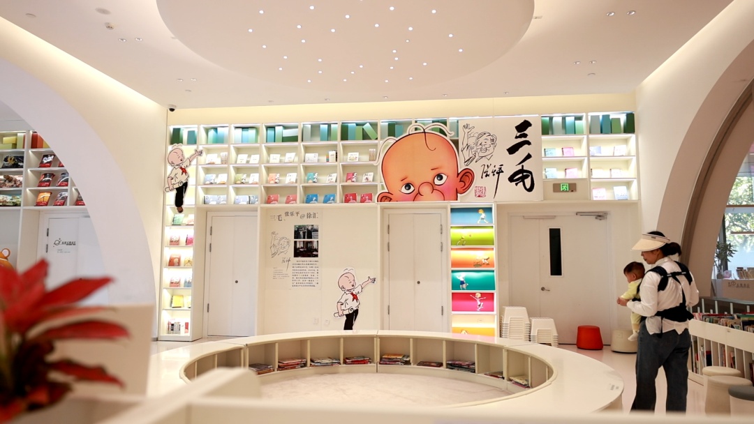 为了培养孩子们的阅读兴趣,书院在一楼设置了少儿区,从儿童绘本到青少年文学应有尽有,孩子们可以在大人的陪伴下畅游文海。在少儿区还有一片三毛主题阅读区,展示了“三毛”所有系列的漫画。