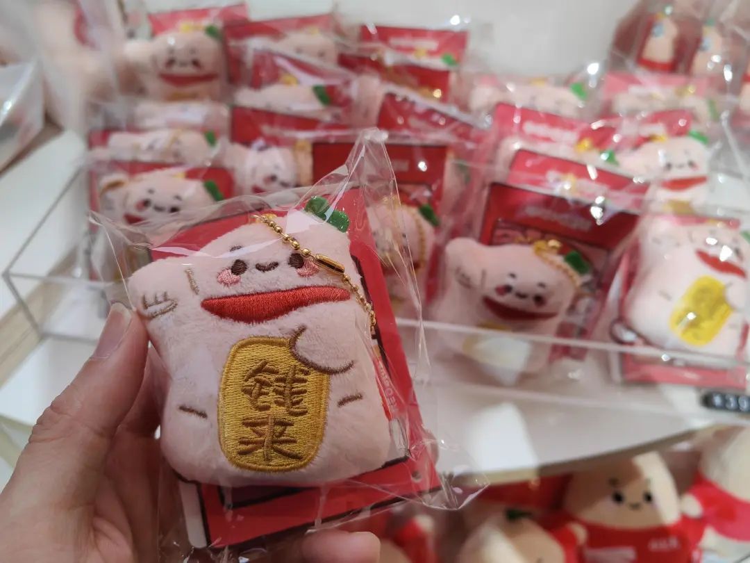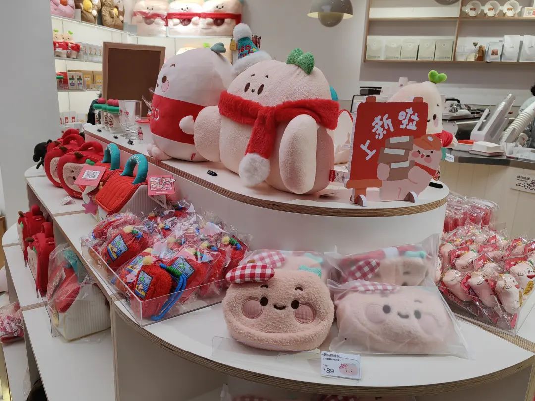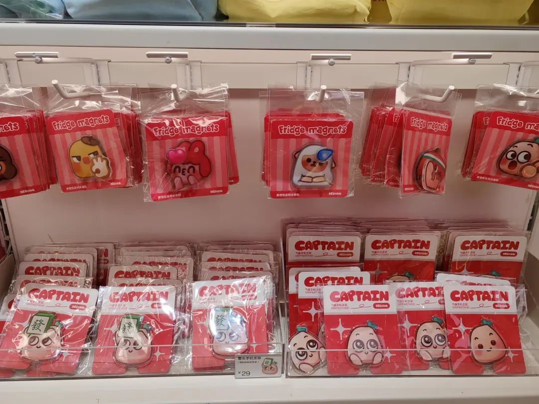 记者在店内看到,虽然新店开业,但其独特的氛围和丰富的产品已经吸引了不少探店爱好者前来体验。店内推出了由薯队长、美娜、小黑等六个原创IP卡通形象组成的周边方阵,这些可爱的形象被设计成了各式各样的周边商品,如表情包系列的夹子、冰箱贴、气囊手机支架,以及各类包包、杯子、餐具、抱枕等生活用品,甚至还包括了护照本、行李牌等旅行配件,每一件商品都融入了小红书的文化元素和创意设计理念,让人爱不释手。店员介绍,售价为39元的冰箱贴和“钱来拜访”挂件,成为近期的销售爆款。