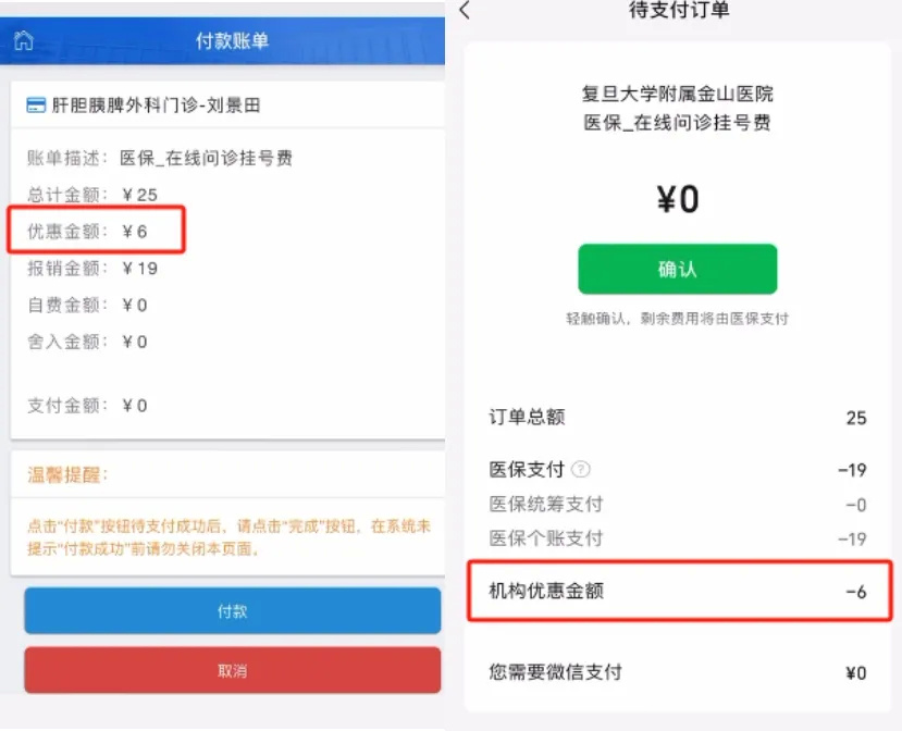 11月1日至30日,复旦大学附属金山医院互联网医院将推出减免优惠,期间,在金山医院互联网医院普通门诊就诊的医保患者,挂号费一律减免6元。