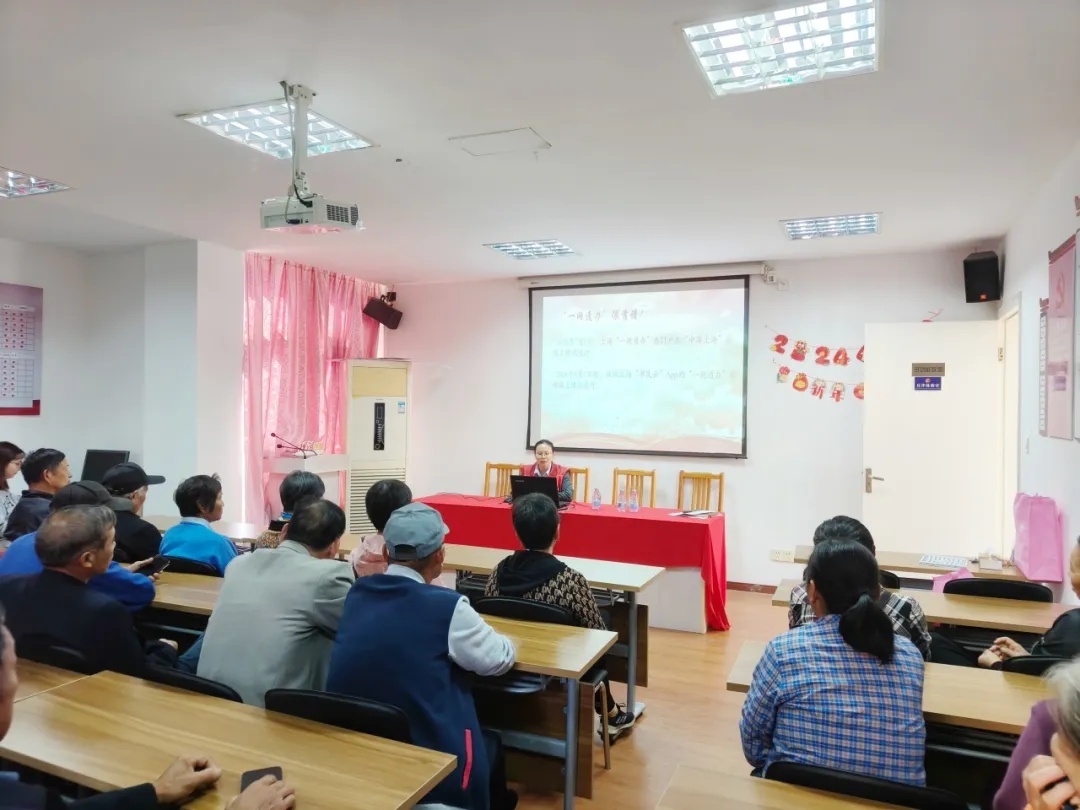 相关工作人员通过图文并茂的方式,以通俗易懂的语言,为老同志们解说什么是“一网通办”,讲解了“一网通办”PC端、“随申办”移动端、政务服务自助终端的适老化改造,告诉老年人如何使用放大字体、语音播报等为老年人开发的功能。同时,还介绍了三端涉及老年人的服务应用,比如PC端的“老年人液化气配送一件事”“老年人健康服务一件事”,移动端的“随申码”“电子亮证”“助餐点办理”,以及自助终端的“光明随心订”“身份证等证件免费打印”“天然气充值缴费”等功能。