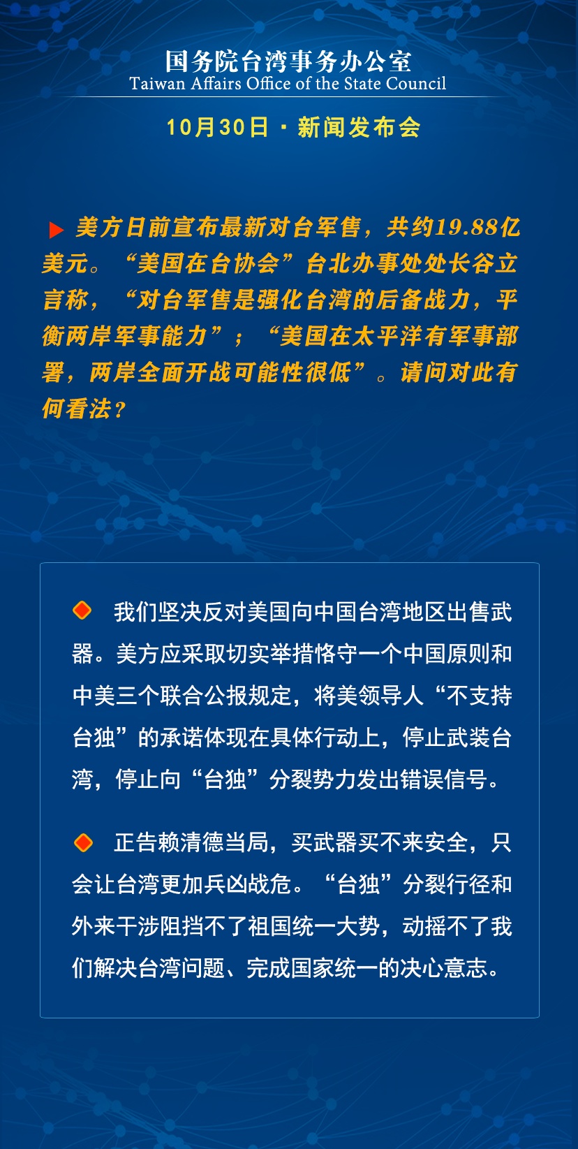国台办:“台独”分裂行径和外来干涉动摇不了我们解决台湾问题的决心意志