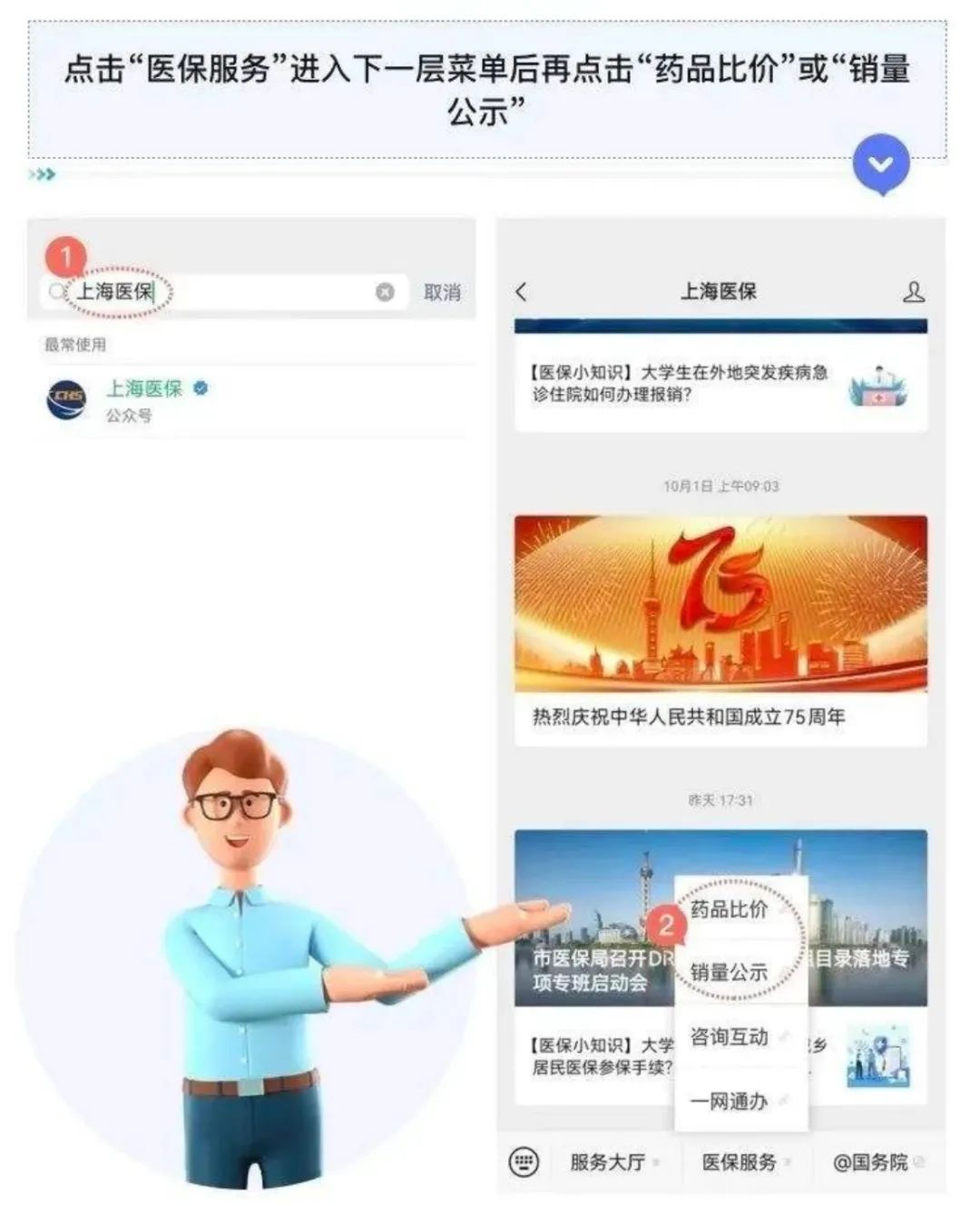 据上海市医保局消息,市医保部门开发上线了“药品比价”小程序。市民可通过“上海医保”微信公众号,一键查询、实时比对全市定点零售药店的医保药品价格,减少药店购药信息差。