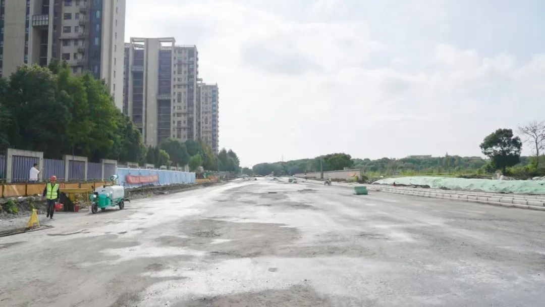 “目前,道路的机动车道以及西侧的非机动车道的基层施工已经基本完成。接下来,我们计划启动机动车道的沥青摊铺,并对现小区出入口的便道进行人行道改造。”上海嘉定新城发展有限公司工程部负责人魏庆海介绍。