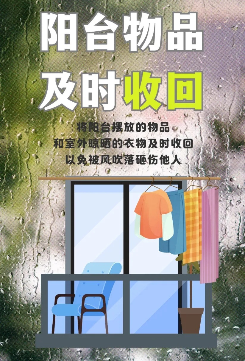 2 | 将阳台、屋顶等处的花盆、杂物等,及时搬移至室内或其他安全地方。 |