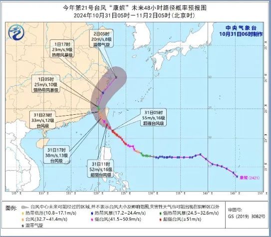今年第21号台风“康妮”已于2024年10月30日早晨由强台风级加强为超强台风级。上海中心气象台31日09时00分发布台风蓝色预警信号。