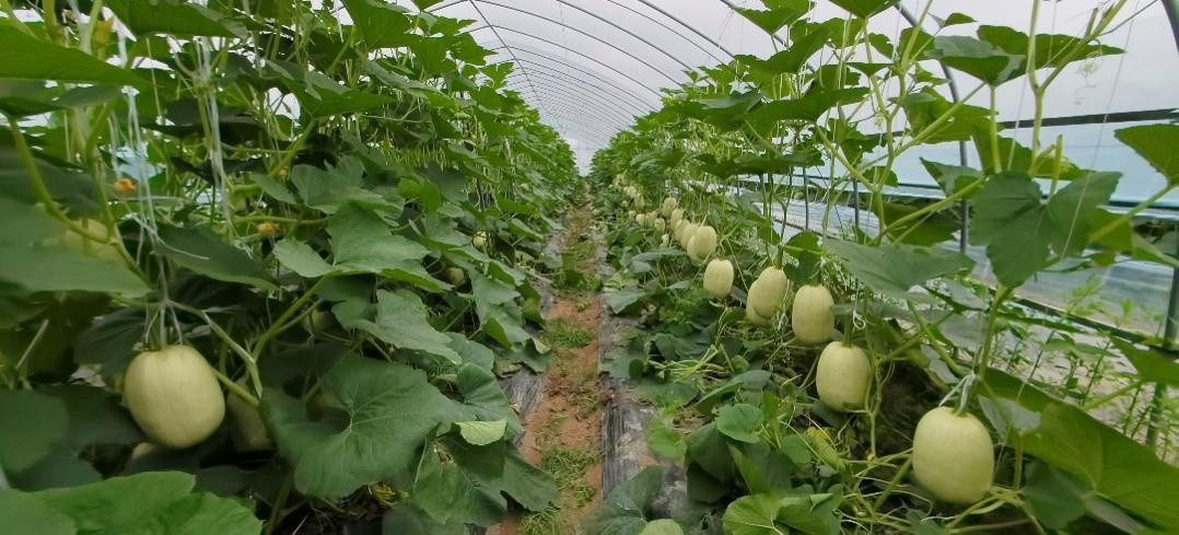 崇明庙镇联益村是崇明金瓜科技示范点,2023年种植金瓜650亩,平均亩产2.5吨,平均亩产值达4000元左右。村内5家合作社联合成立上海崇明金瓜种植专业合作联社,联社每年可种植二茬金瓜,全年不间断供应市场。