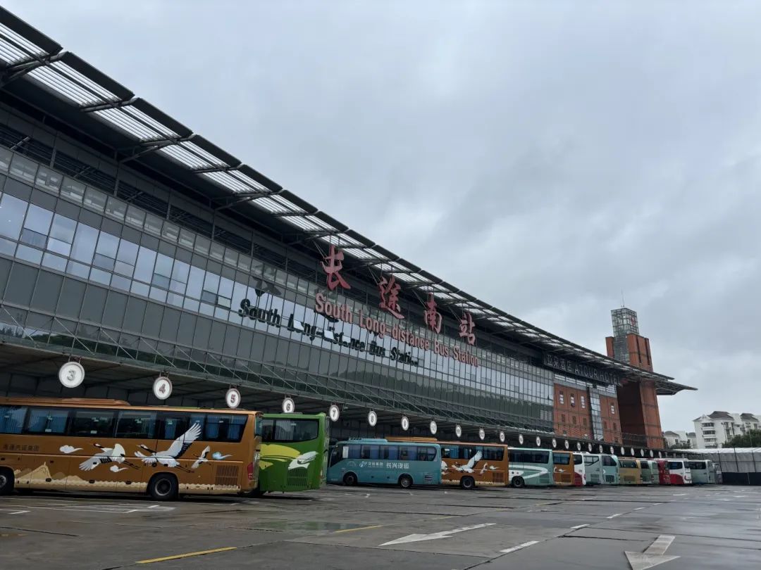 下午两点,长途南站停车场内,等候的客运大巴秩序井然。候车大厅中,旅客们大包小包的行李摆放在座椅旁,大家或安静地浏览手机,或与同伴低声交谈。检票口前,准备上车的旅客正有序排队检票,工作人员也在大厅内巡视,为有需要的旅客提供帮助。