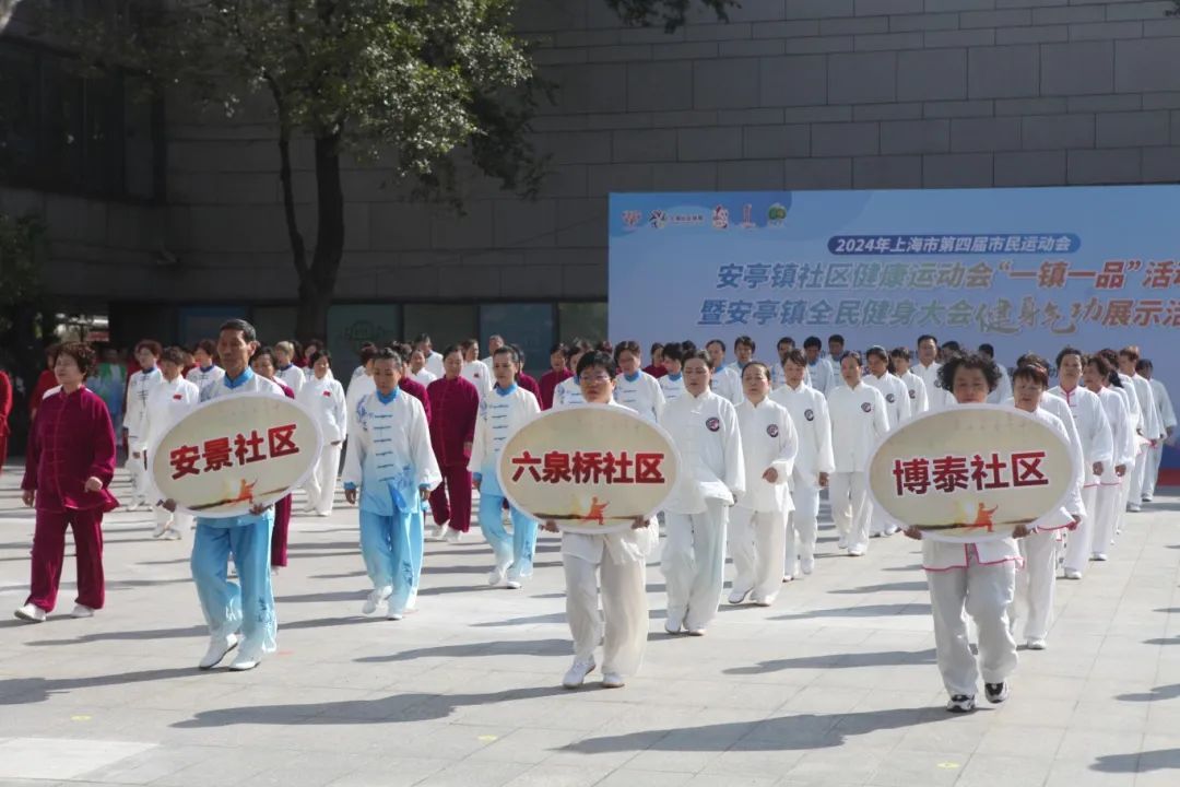 近日,2024年上海市第四届市民运动会、安亭镇社区健康运动会“一镇一品”展示活动暨安亭镇全民健身大会健身气功展示活动,在安亭镇文化体育服务中心举行,来自各村居的29支健身队伍、近400余名运动员同台竞技。