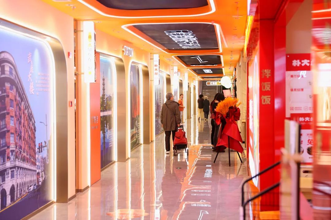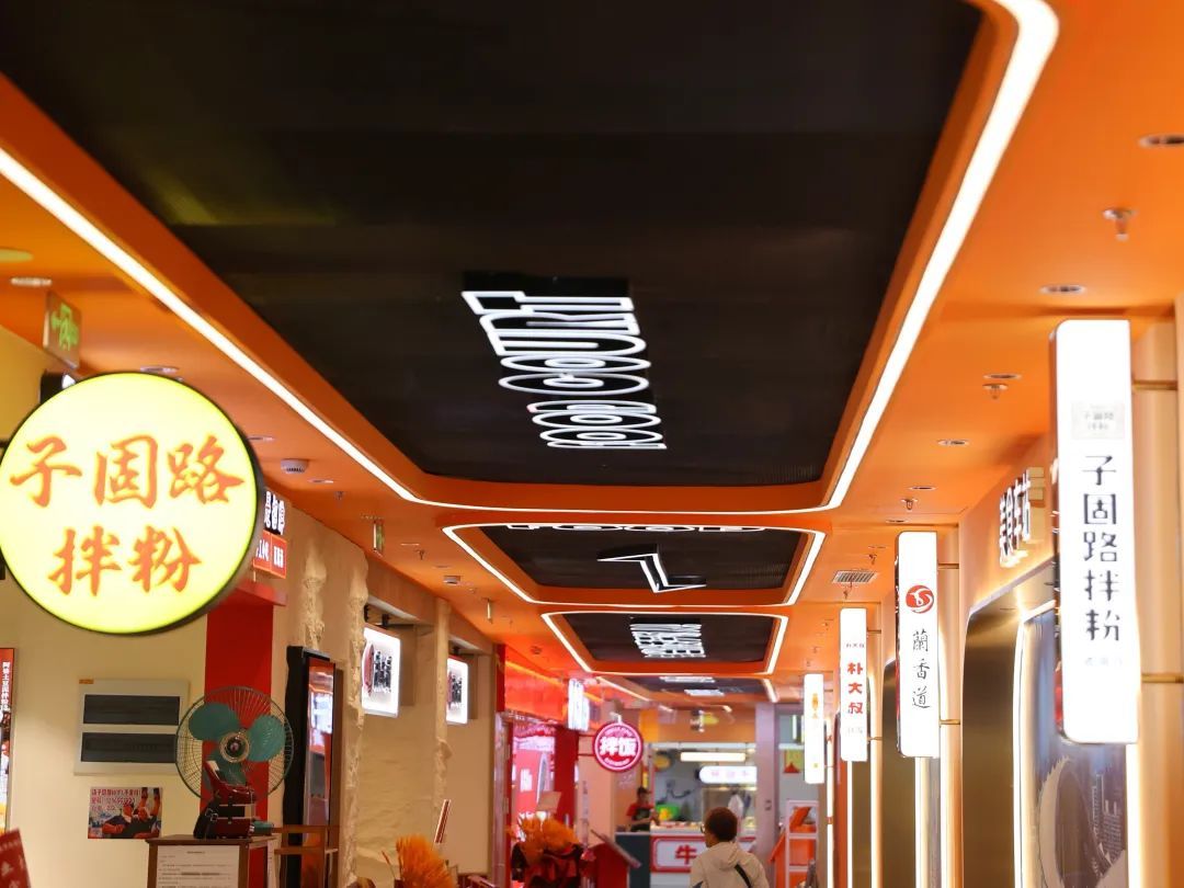 二楼的汇食坊,则以美食列车为主题进行了别具一格的整体设计。它汲取了“繁花”系色彩搭配,营造出充满层次感与冲击感的视觉空间体验。这里入驻了袁富贵海鲜排档、大米先生、鱼你在一起、子固路拌粉、兰香道拉面和朴大叔拌饭等众多美食商家。在附近写字楼工作的白领小李表示:“这里现在很方便,中午吃饭有好多选择,而且环境很有特色,感觉吃饭都变成了一种享受。”这些美食为周边白领和社区居民提供了便捷又美味的选择。