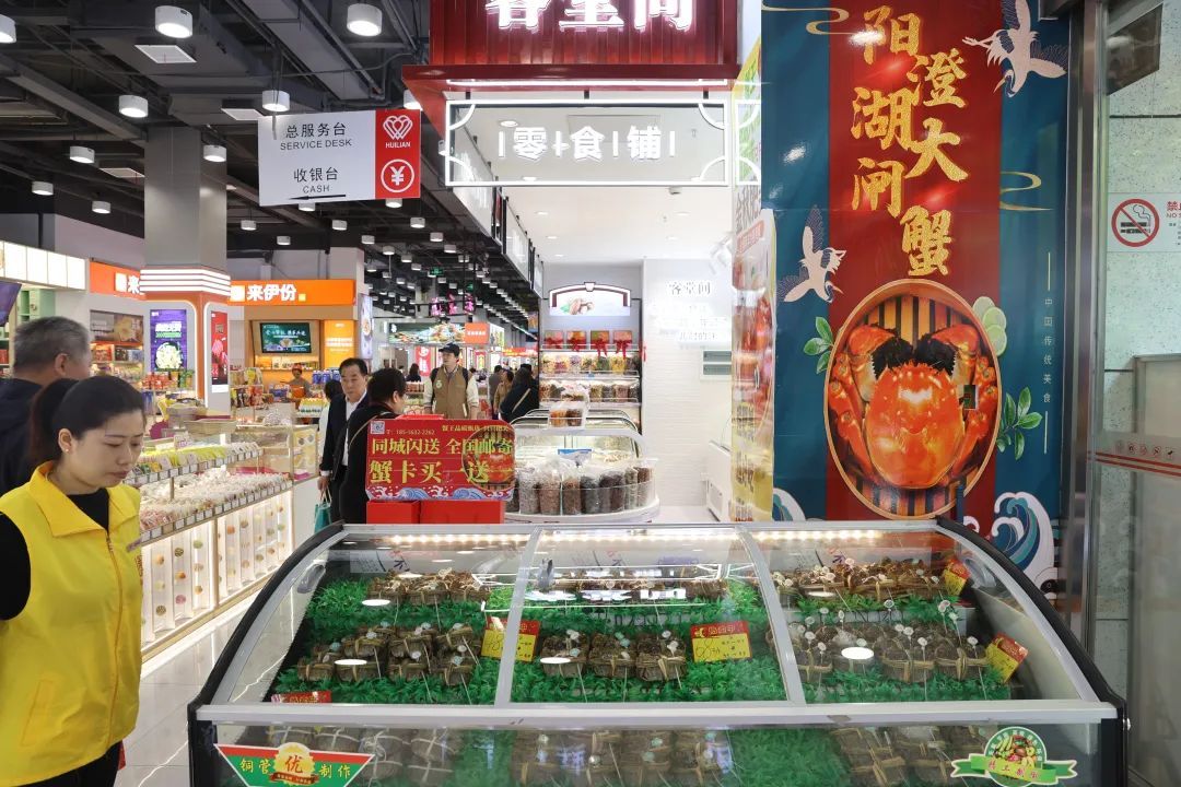 随着“双11”购物节的临近,不少商家也开展了促销活动。一楼的大闸蟹柜台推出100元5只母蟹;紫晶轩大众点评打卡收藏送精美小菜;朴大叔16:00—21:00可享8.5折(酒水饮料除外);袁富贵线上35元团50元券,线下会员6.8折。