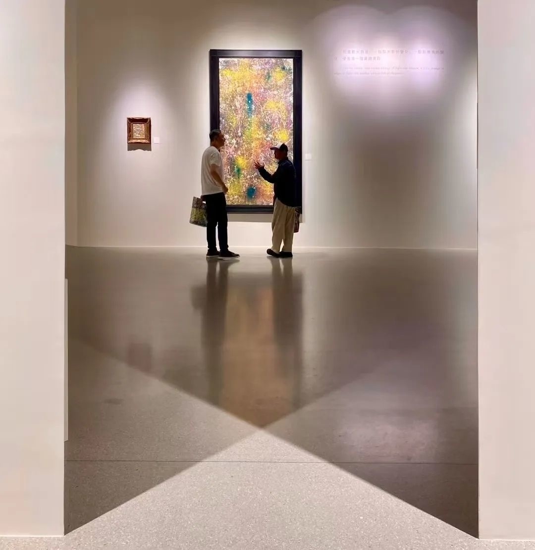 在2500平方米的展厅内,一幅高3.5米,宽1.5米的画作特别引人注目。画面上是各种色彩的叠加,表现了作者心到、意到、气到的心境。令人很难想象的是,孙少文并没有学习过书画,只是兴趣上的偏爱。“我没有办法再重复画出任何一张作品。没有学过书画的我,调色有太多的随机性,常常是偶遇之,不甚喜,遂欣然用之。”孙少文说,“感谢这些偶然性,令自己得以不断用瞬间感受到的色彩,画出心中的律动。而这些色彩,往往就是最真实、最贴切的表达。”