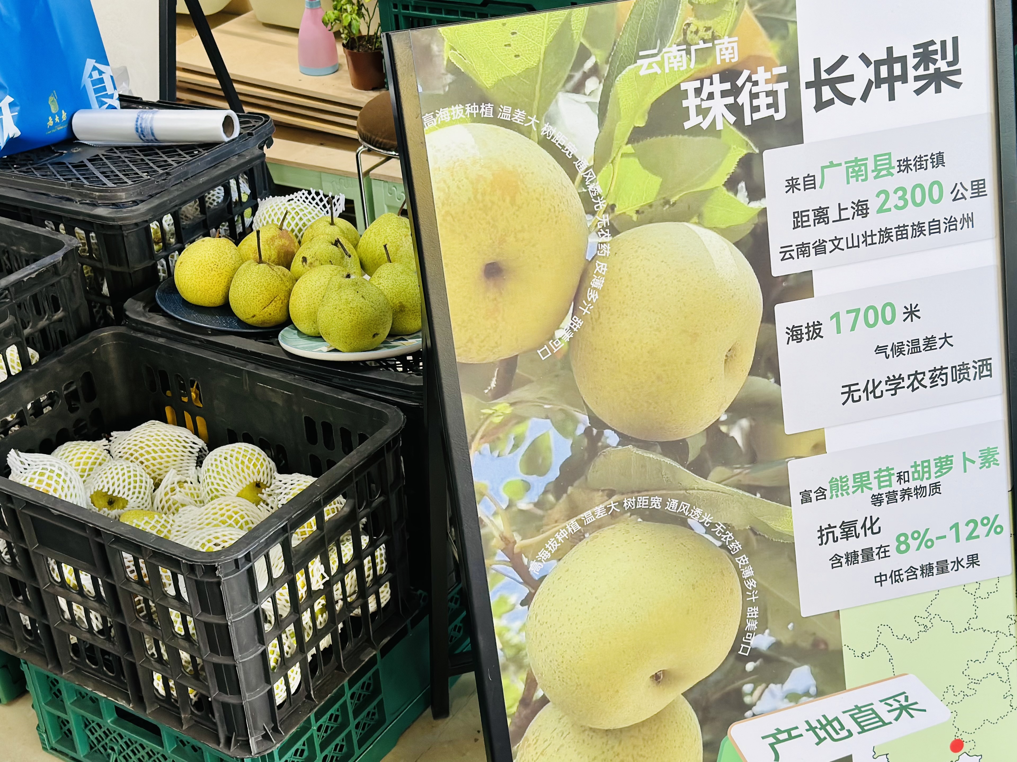 在距离上海2300公里以外的云南省文山壮族苗族自治州广南县珠街镇,出产一种特有的水果——长冲梨,每年金秋,正是广南县珠街镇长冲村瓜果飘香的季节。近期,在中央东西部协作战略指引下,借助静安与广南两地协作帮扶优势,这款具有鲜明地方特色的农产品已来到上海静安900食品城,让广大上海市民第一时间能品尝到鲜果鲜味。