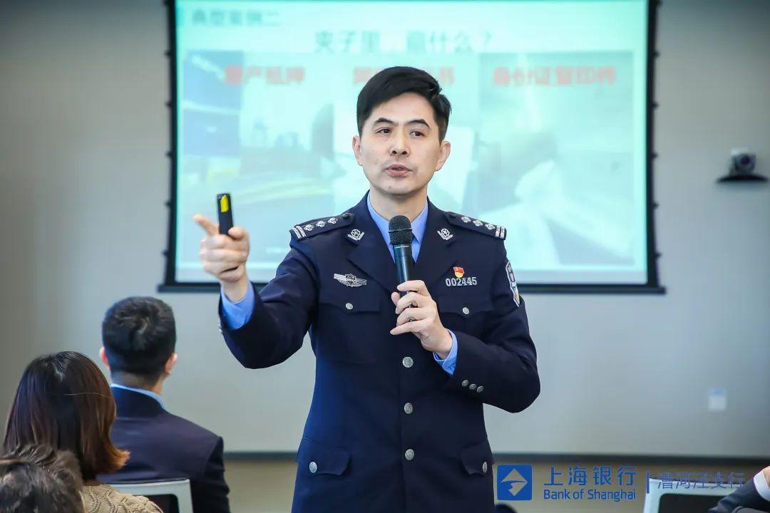 本次讲座的特邀主讲嘉宾是来自上海市公安局治安总队的黄奕,他除了是一名警官,也是一位深受群众喜爱的跨界“网红”。2020年,黄奕被司法部授予“普法为民好榜样”荣誉称号。针对当前老年人金融安全案件多发的态势,黄奕通过趣味讲座向现场观众普及金融安全知识。