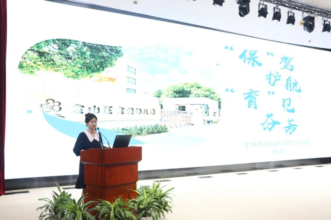 表彰会上,金山区金悦幼儿园陈萍代表获奖选手作交流发言。