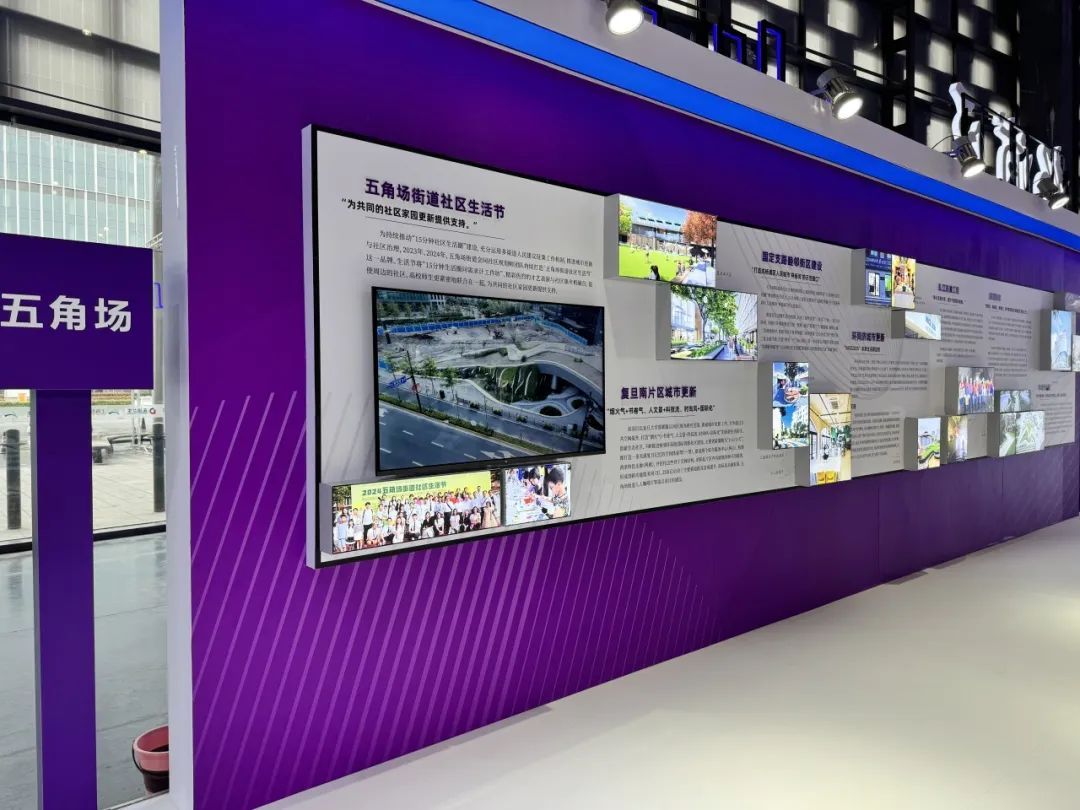 杨浦滨江是创新要素的交汇枢纽、历史未来的魅力水岸、幸福汇聚的宜居社区。杨浦滨江岸线作为中心城区浦西最长滨江岸线,涉及最大规模的工业遗存转化和最大体量的旧区改造。滨江南段定位为“人民城市展示区”,全面提高规划、建设、治理水平,实施城市更新行动,加强基础设施建设,打造“人民城市中心”地标群,建成人民城市建设成果的集中展示区。在图景交融的展板中,观众可以直观地了解到杨浦区近五年来的飞速发展。