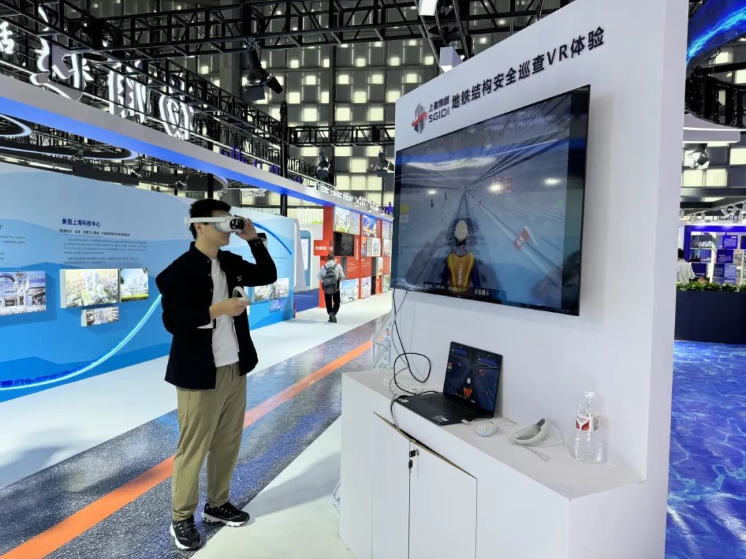 在杨浦区展馆的另一侧,上海勘察设计研究院(集团)股份有限公司带来地铁结构安全巡查VR体验。