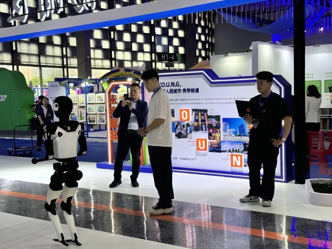 走进杨浦区展馆,科技感满满。成立于2021年的上海卓益得机器人有限公司(Droid Robot),在机器人双足动态行走和跨模态学习方面拥有超过20年经验。其研发的机器人产品为科研教育、公共服务、健康养老等场景提供智能机器人解决方案。